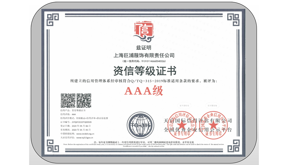 巨浦公司創(chuàng)建于2007年,經(jīng)過努力發(fā)展從一期工廠立足于中國國際之都上海, 上海市嘉定區(qū)曹安公路3299號2007年建成投產(chǎn),到現(xiàn)公司業(yè)務(wù)已遍布國內(nèi)外市場,生產(chǎn)設(shè)備和設(shè)計能力等都已與國際接軌,打開目前形成了服裝外貿(mào)與國內(nèi)品牌全面發(fā)展的格局,公司有日本和韓國歐洲優(yōu)秀專家及工程設(shè)計人員與生產(chǎn)為一體。二期工廠建立于中國山東省棗莊市東盛工業(yè)區(qū)6號,第一階段已于2010年3月竣工投產(chǎn),現(xiàn)年產(chǎn)能達260多萬套,待第二階段和第三階段全部建成投產(chǎn)后,年總產(chǎn)能將達500多萬套,我們相信同過努力上海巨浦服飾有限責(zé)任公司,山東巨浦服飾有限公司,棗莊市依行天下服飾有限公司共同組成,會成為棗莊一顆璀璨奪目的工業(yè)明珠。
